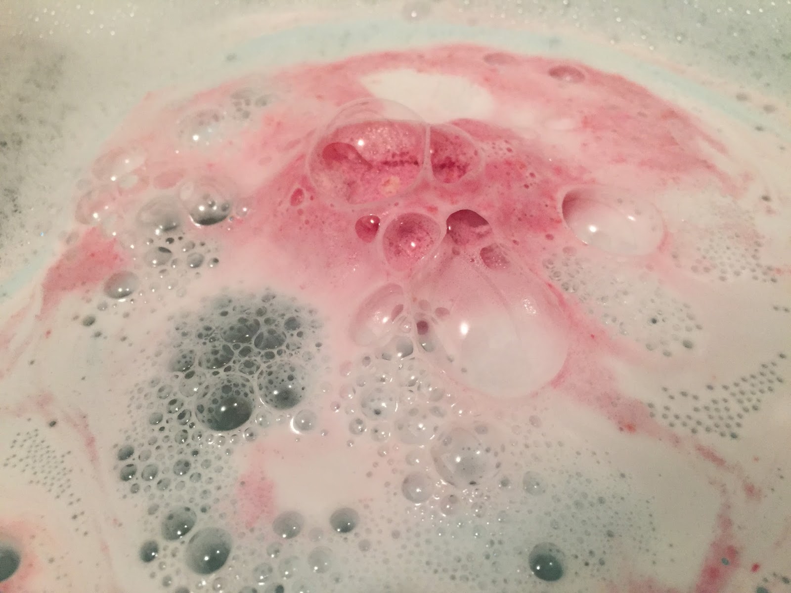 Finally, I threw in a favourite of mine - the Twilight Bath Bomb and watched as waves of pink and blue bubbled and spewed out across the surface of the water. The strong, creamy lavender element of this ballistic dominated the entire bath, and while I was very happy with the outcome, it might be worth using only a half if you want to detect the other elements a little stronger.