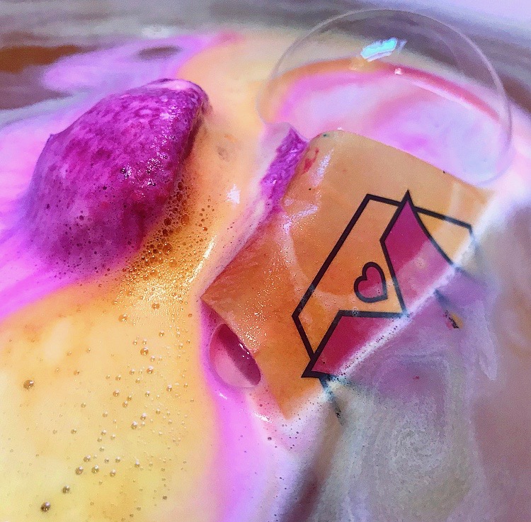 Even if you're not a fan of floral fragrances, I would highly recommend that you try this one out, as it's not your typical floral smell, and instead reminds me a little of the sweetness of Tuca Tuca Liquid Perfume. Although I've referenced the violet element twice now, those who dislike violet scents should still consider using one of these for certain.In the water, Incredible Mum gets to work by sending out waves of beautiful, vibrant foam across the surface of the tub. Gorgeous yellows and oranges and pinks form into swirls and patterns as the bath bomb slowly dissolves into a stunning peach-coloured water. This is a bath bomb that you can enjoy whilst submerged under the water, as I found it took almost fifteen minutes to fully dissolve.